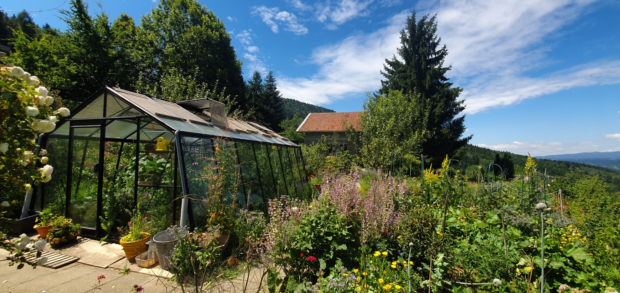 Serre à parois obliques, verre sécurité 4mm